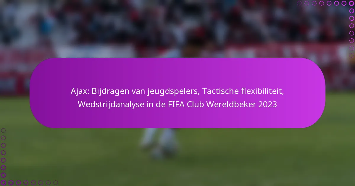 De prestaties van Ajax in de FIFA Club Wereldbeker 2023 toonden hun tactische flexibiliteit en de significante bijdragen van jeugdspelers. Belangrijke momenten gedurende de wedstrijden benadrukten hun sterke en zwakke punten, wat uiteindelijk invloed had op hun positie in het toernooi.
