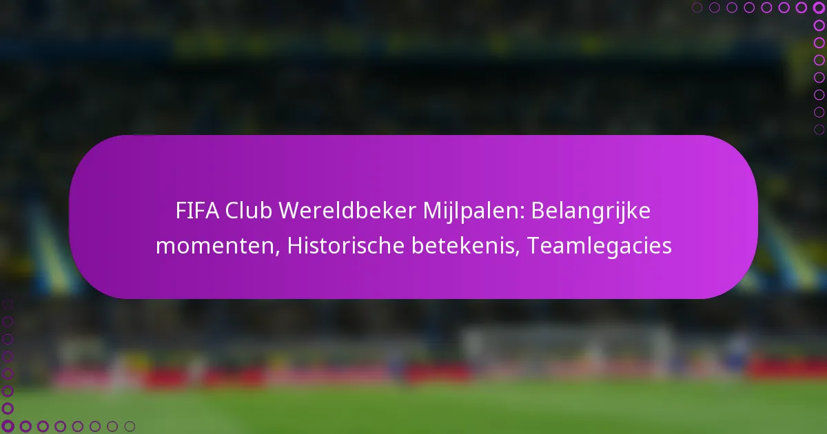 De FIFA Club Wereldbeker is een cruciaal evenement in het internationale voetbal, dat de beste clubs van over de hele wereld tentoonstelt en belangrijke momenten markeert die de erfenis van het toernooi definiëren. Met zijn rijke geschiedenis van iconische wedstrijden en verrassingen, verhoogt de competitie niet alleen de reputaties van teams, maar beïnvloedt ook het bredere landschap van voetbalbestuur en internationaal spel.