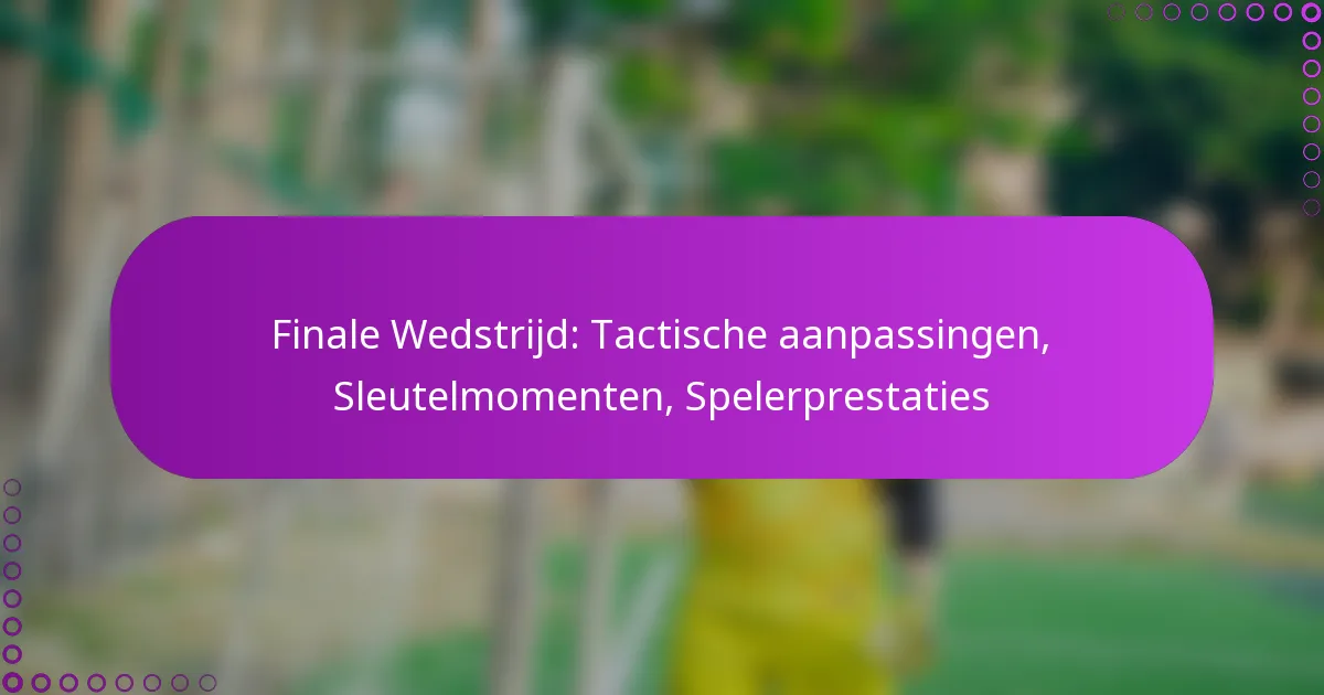Finale Wedstrijd: Tactische aanpassingen, Sleutelmomenten, Spelerprestaties