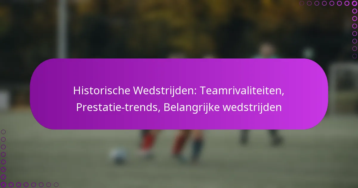 Historische Wedstrijden: Teamrivaliteiten, Prestatie-trends, Belangrijke wedstrijden