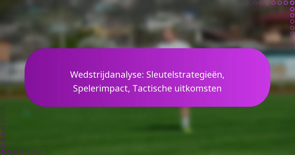 Wedstrijdanalyse: Sleutelstrategieën, Spelerimpact, Tactische uitkomsten