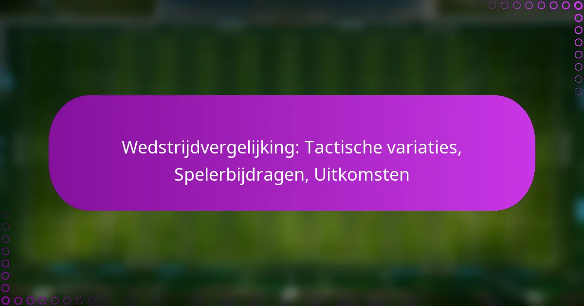 Wedstrijdvergelijking: Tactische variaties, Spelerbijdragen, Uitkomsten