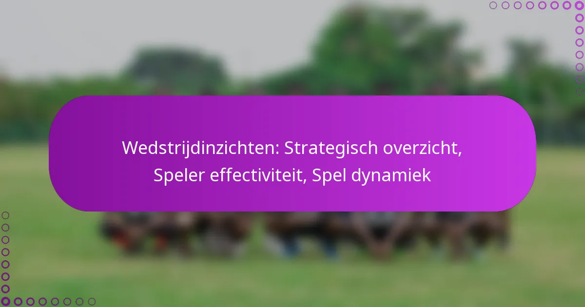 Wedstrijdinzichten: Strategisch overzicht, Speler effectiviteit, Spel dynamiek