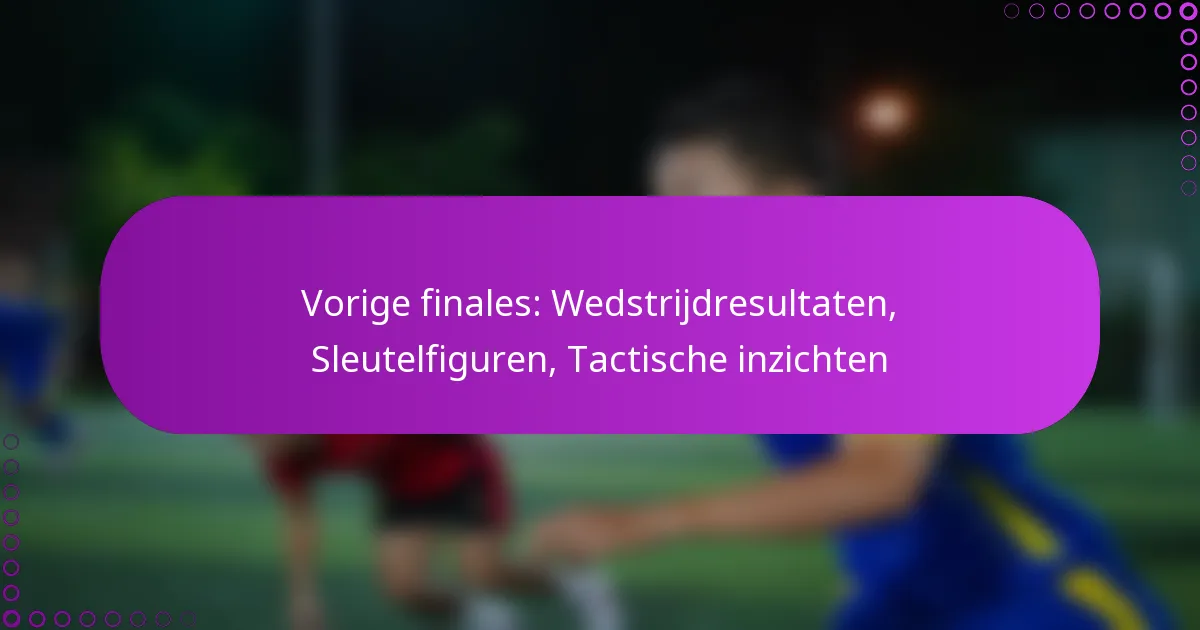 Vorige finales: Wedstrijdresultaten, Sleutelfiguren, Tactische inzichten